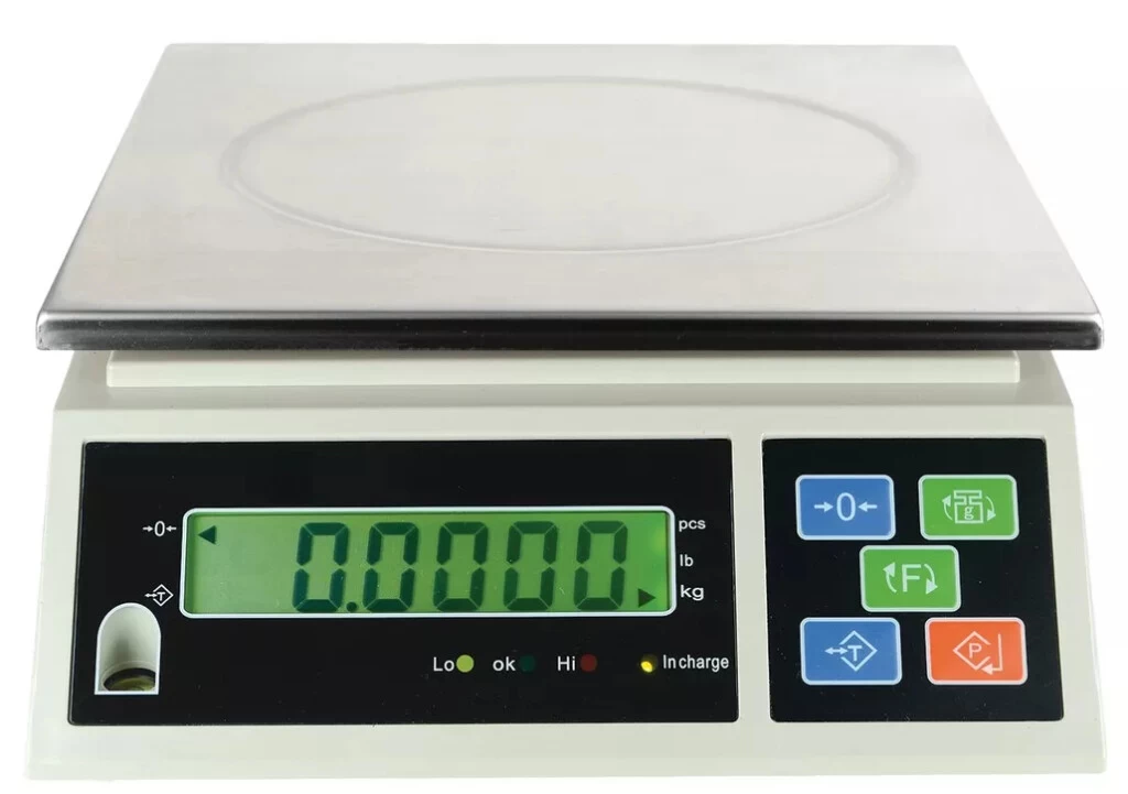 Balance industrielle avec écran digital LCD et clavier rétro-éclairé.
