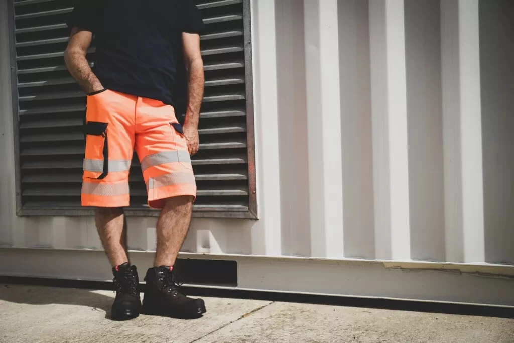 Ceinture 5 passants. Braguette zippée. 1 poche cuisse avec rabat fermé par auto agrippant. 1 poche dos plaquée fermée par auto agrippant. 2 bandes rétroréfléchissantes bas de jambes.