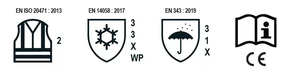 Normes : EN ISO 20471:2013, EN 14058:2017, EN 343:2019.