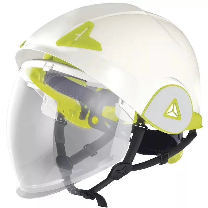 Casque de chantier double coque ABS avec visière escamotable PC.