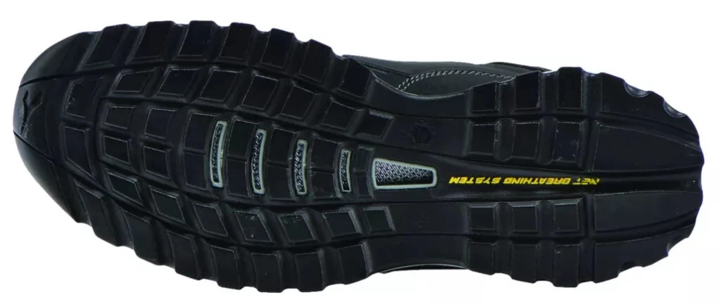 Chaussure de sécurité en cuir Perwanger anti-rayure, hydrofuge et respirant avec le système Net Breathing System breveté par Geox. Protection du bout. Embout en aluminium 200 J. Chaussant 11. Doublure 3D effet cheminée. Renfort interne anti-déchaussement à l’arrière. Insert anti-perforation K SOLE BREATHABLE. Semelle de propreté amovible,