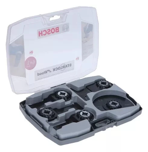 Kit de menuiserie pour outils oscillants multi-fonctions. Pour le sciage, la coupe plongeante de divers matériaux, la découpe de cadres de porte, les petits travaux d’adaptation…