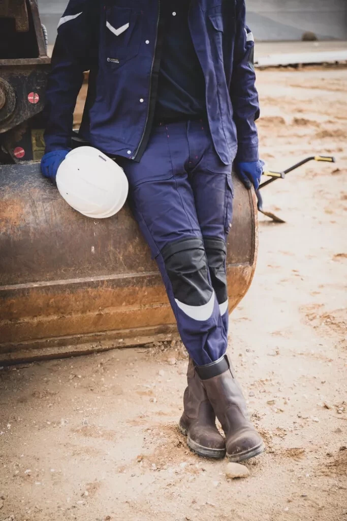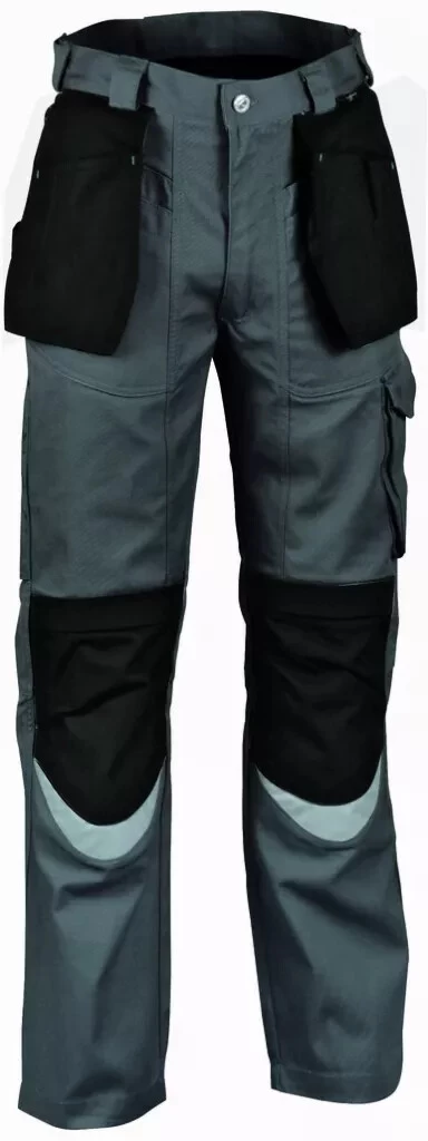 4 poches larges à lavant, ceinture ajustable, double poche à larrière dont 1 poche avec patte, entrejambe renforcé, genoux renforcés en CORDURA®, inserts réfléchissantes 3M SCOTCHLITE Reflective Material – 8910 Silver Fabric, jambes et genoux à coupe ergonomique, passant porte-marteau, poche latérale, poche pour mètre pliant, poches extérieures porte-clous en CORDURA®, poches pour les genouillères