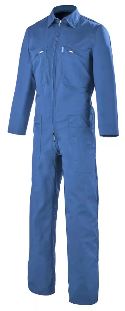 Col cavalier. Fermeture à glissière métal. soufflet dos. 2 poches poitrine fermées. 2 poches cuisse. Poche mètre. Passe-mains. Élastique dos. Manches droites.
