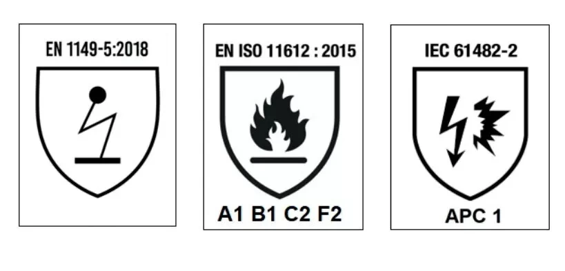 non feu, antistatique et protection à larc électrique.