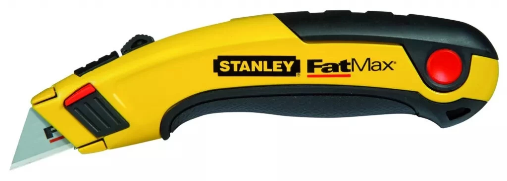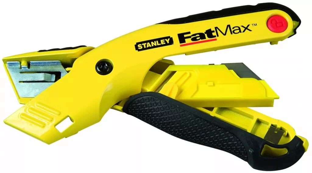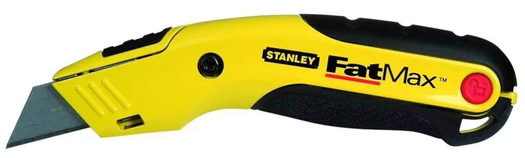 Remplacement frontal de la lame sans outil par simple pression sur un bouton.