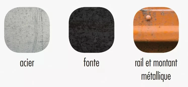 Pour acier, fonte et rail/montant métallique.