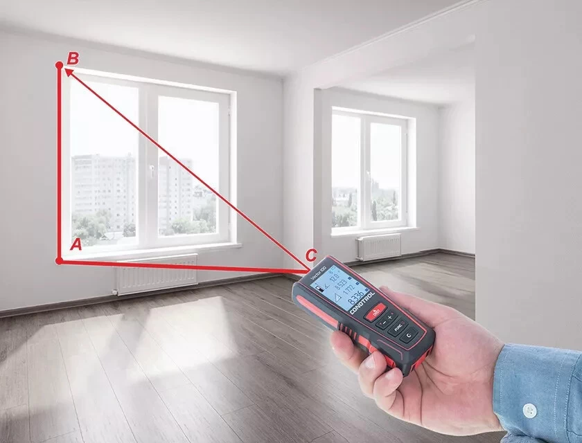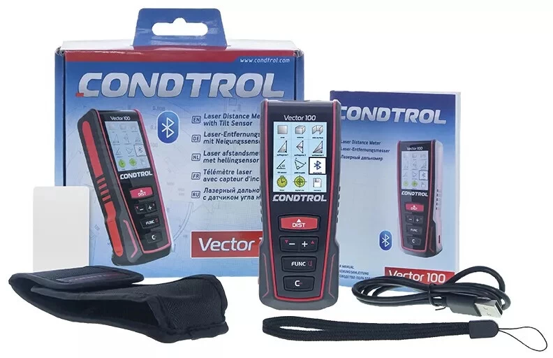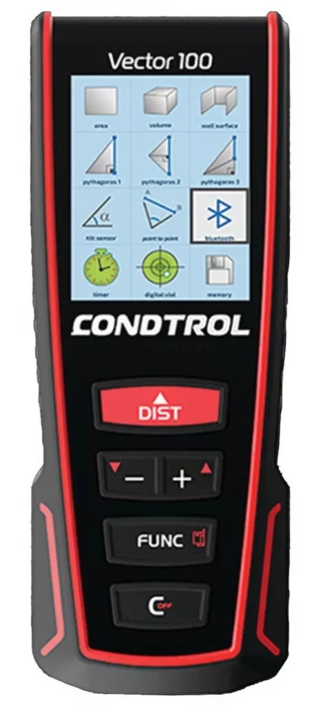 Fonctions avancées : mesure continue, surface, volume, Pythagore, surface murale, mesures entre 2 points, minuterie, niveau à bulle numérique.
