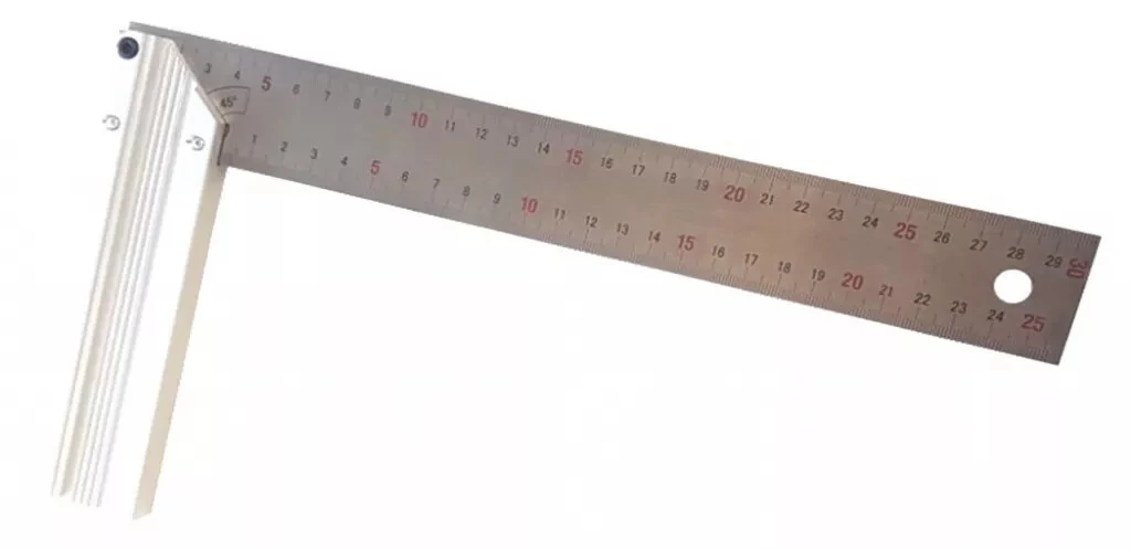 Equerre menuisier, lame en acier inox souple. Bonne précision.
