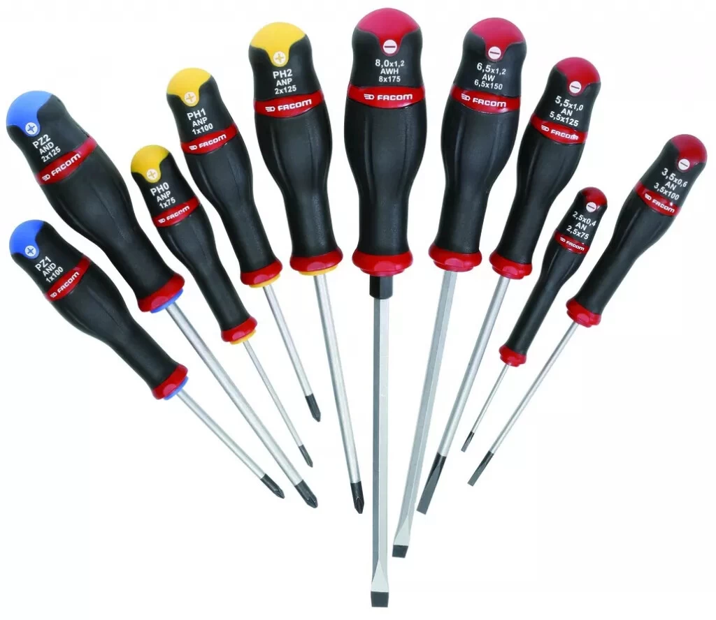 FACOM Jeu De 10 Tournevis Lames Rondes Et Lames Hexagonales – ATW.J10PB