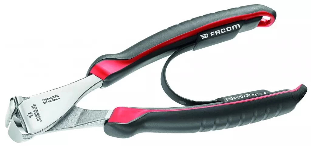 (maxi. 200 kg/mm²). Gaines ergonomique en matériau très résistant aux produits chimiques. Ressort de rappel amovible. Avantage mécanique grâce à la position du rivet et des mâchoires. Bord coupant incliné avec surface plate pour fournir à la fois une durée de vie