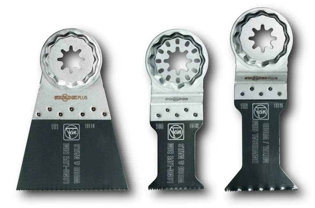 Assemblage des 3 lames de scie E-Cut FEIN les plus courantes pour une utilisation universelle. Parfaitement équipé pour toutes les applications de sciage.