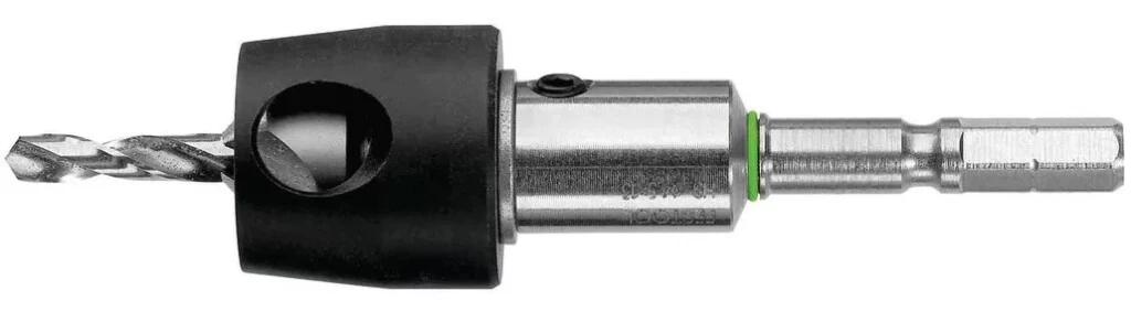 Butée de profondeur réglable avec foret interchangeable. Pour assemblages vissés dans le bois, l’acrylique, l’aluminium ou les matériaux minéraux.