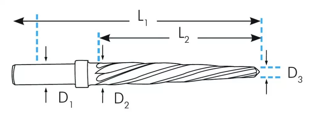 Alésoir HSS 5 lèvres pour agrandir les trous.