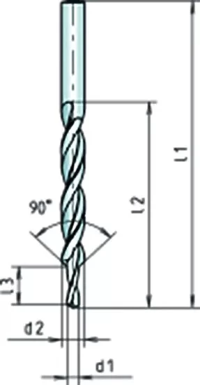 Mèche hélicoïdale à 2 étages. Utilisations : uniquement pour percer dans lalu et le PVC. Pour vis et tête fraisée à 90°.