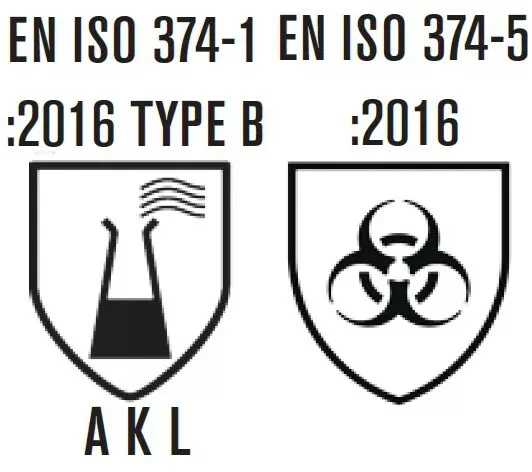 Normes : EN ISO 374-1:2016 type B, EN ISO 374-5:2016 et EN 388.