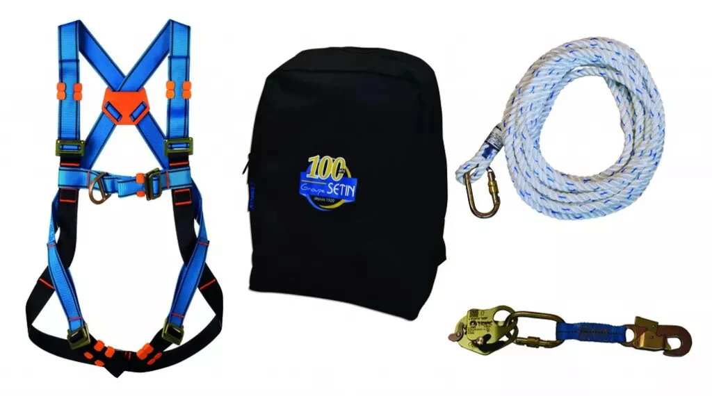 Il est équipé de: 2 bretelles + 1 point dancrage dorsal + 1 point d’ancrage sternal + 2 passants de positionnement des sangles des