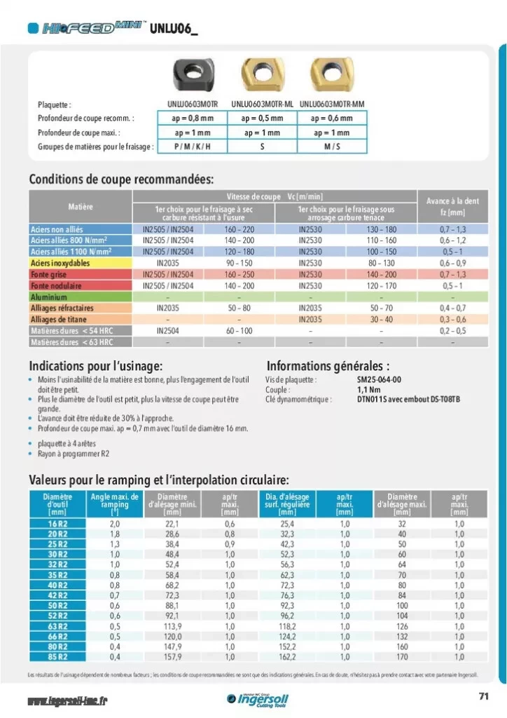 High Feed Mini Tête Vissée Et Plaquette UNLU 06