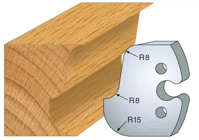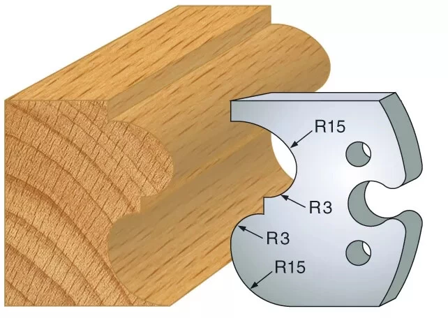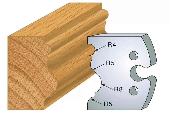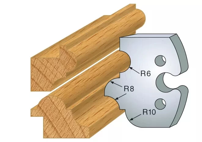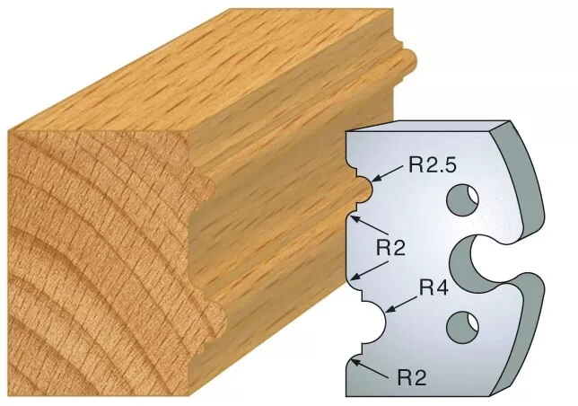 | Jeu de 2 fers type | 1/4 de rond et doucine, 1/4 de rond multiple, Bec de corbin et Scotie, Chanfrein 20°, Congé 1/4 rond 12 mm, Double astragale 5-8 mm, Doucine rustique, Feuillure 50 mm, Jet deau, Main courante moulurée, Moulure Renaissance, Mouton de 29 mm, Multi-moulures, Multi-profils, Petit bois de fenêtre, Plate bande double, Profil et contre-profil, Rainure / languette 8 mm, Tore à gorge |