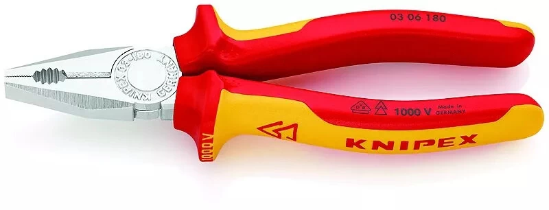 Pince chromée, poignées isolées avec gaines bi-matière, certifiées VDE.