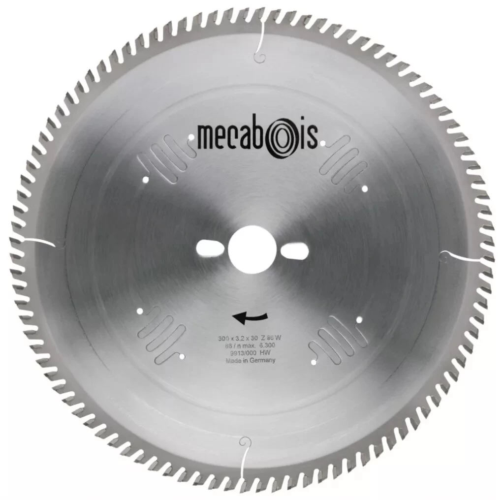 Lame carbure à denture fortement alternée pour une coupe lisse sans éclat. Pour machines stationnaires ou portatives. Norme EN 847-1.