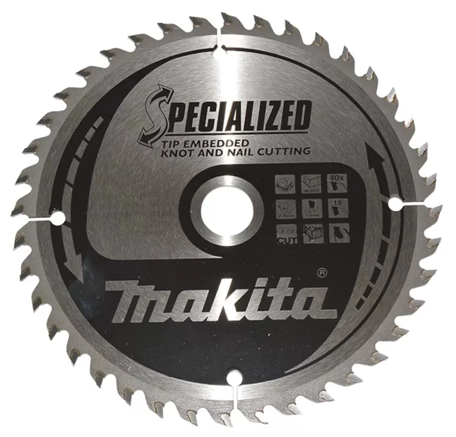 Lame carbure à denture alternée, type à pointes intégrées. Solidité exceptionnelle des pointes carbure. Pour le travail du bois.