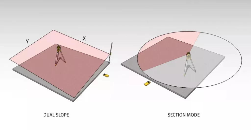 Fonctions disponibles : dual slope (inclinaison), balayage, section mode (zone dĂ©limitĂ©e), manual aligment (orientation d’un axe en mode vertical) et systeme LED assist.
