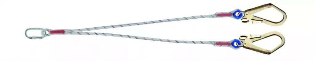 Longe en drisse double de 11 mm sans absorbeur dÂĂ©nergie, Ă©quipĂ©e d’1 connecteur M10 Ă vis et de 2 connecteurs M53 grande ouverture.