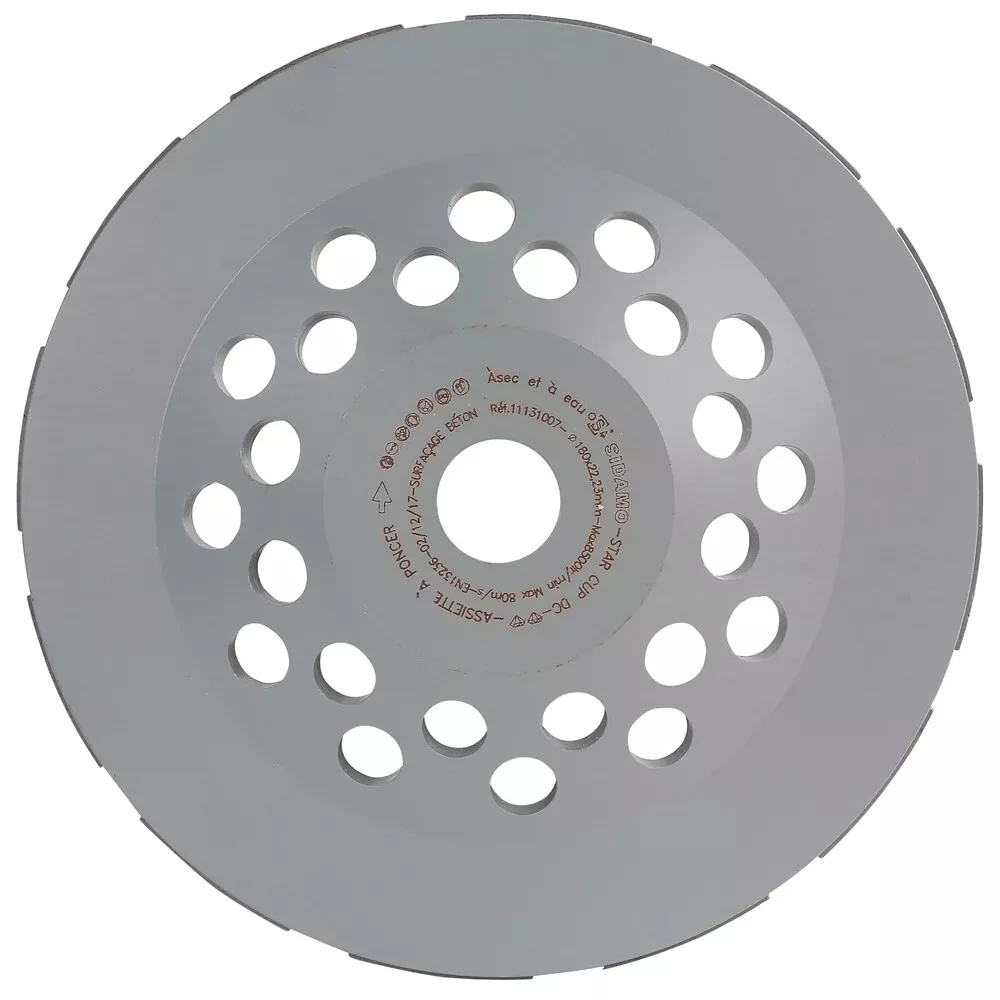 Assiette à poncer diamant à moyeu déporté et segments brasés argent pour les travaux de surfaçage des matériaux de construction. Rendement optimal. Vitesse max. 8500 trs/mn.