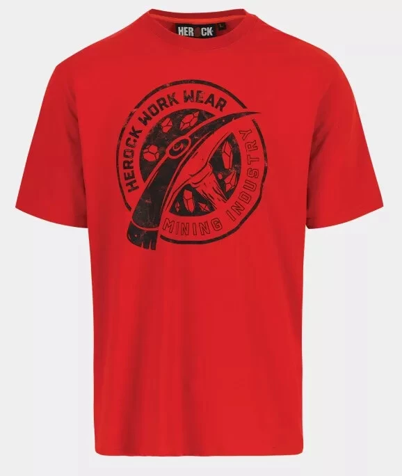 Tee-shirt Worker : imprimé HEROCK® noir sur fond rouge, col rond, 100% jersey pré-rétréci, 190g/m².