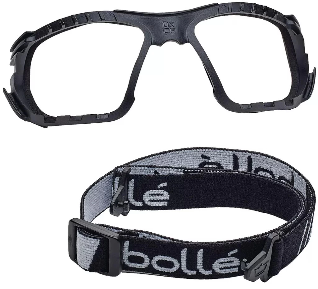 Lunettes en polycarbonate incolore, dotées d’une monture enveloppante et d’un nez antiglisse.