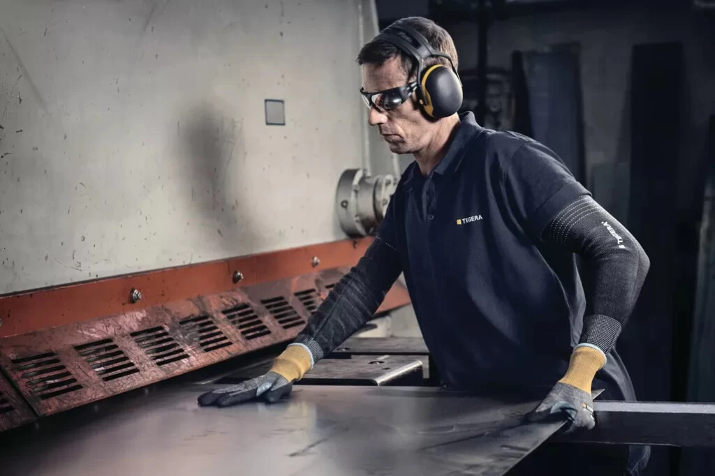 Manchette en technologie CRF®, polyester, spandex et fil de fibre en acier inoxydable.