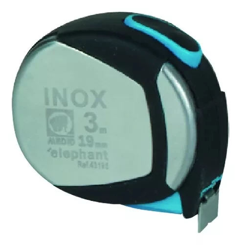 Mesure avec tous les composants métalliques en acier inoxydable. Ruban graduée sur les 2 faces dont 1 verticale et recouvert de nylon. Crochet blindé. Blocage du ruban et retour automatique.