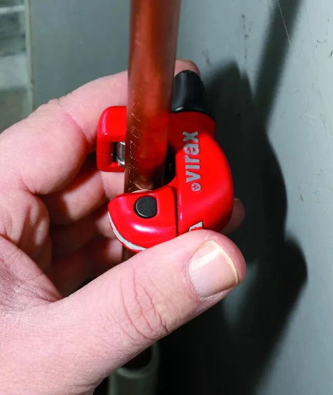 Longueur 80 mm. Hauteur 46 mm. Epaisseur maxi : 2 mm. Permet de couper des tubes dans des endroits exigus.