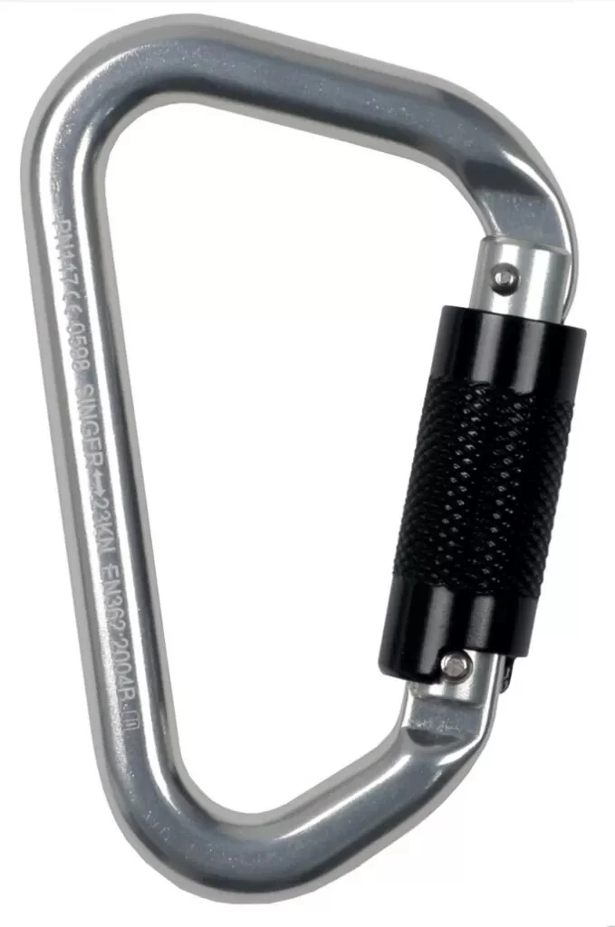Mousqueton à verrouillage automatique en alliage léger, à ouverture et fermeture aisée.