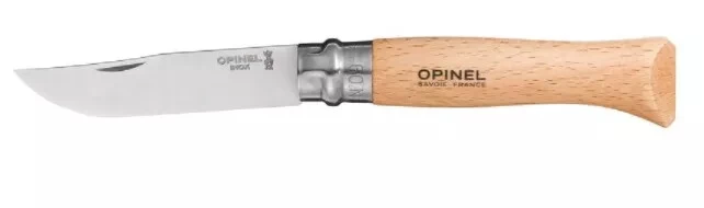 Manche bois teinté vernis. Virole nickelée. Lame inox.