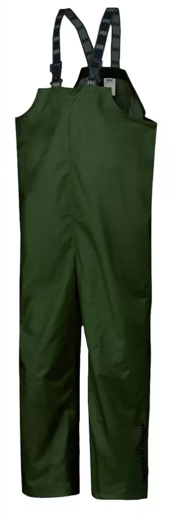 Revêtement en PVC. Tissu et construction imperméables. Poche intérieure sur la poitrine avec fermeture éclair. Bretelles élastiques réglables. Réglage par bouton-pression à lourlet.