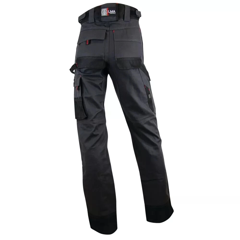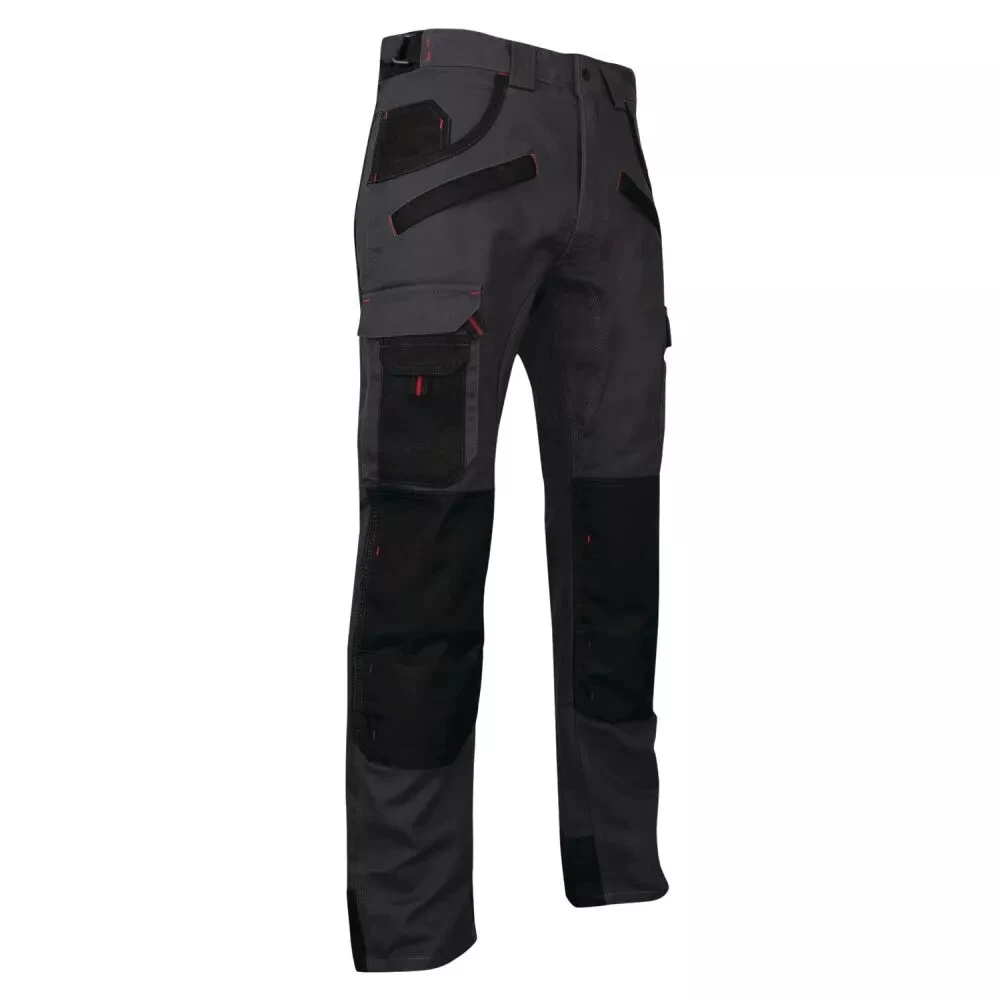 Pantalon de travail très résistant, triples piqûres. Empiècements noir résistants et étanches. Poches genouillères.