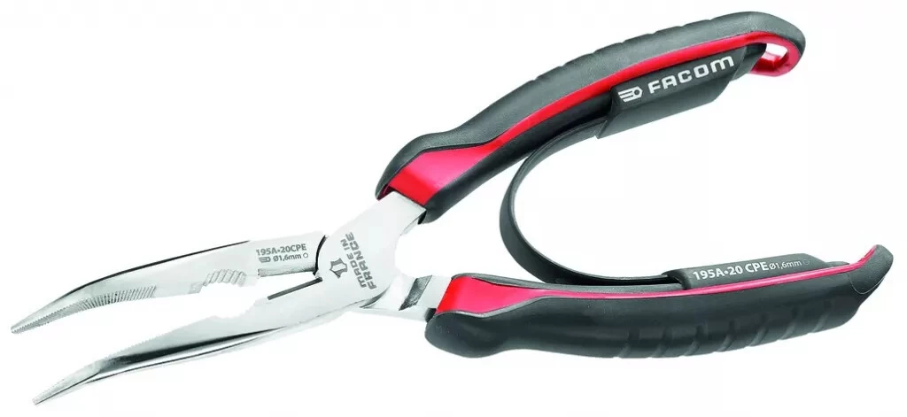 Becs fins effilés, finement striés. Gaines ergonomique en matériau très résistant aux produits chimiques. Ressort de rappel amovible. Avantage mécanique grâce à la position du rivet et des mâchoires.