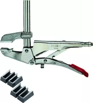 Serrage instantané et puissant. Mors de serrage parallèles, fraisés, planés et rainurés avec prisme pour pièces rondes au mors inférieur. Livrée avec 2 paires de protections plastiques amovibles pour le serrage de pièces délicates.