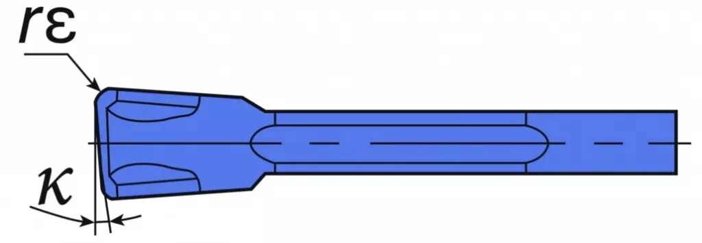 W = largeur en mm. rE = rayon en mm. K = angle.