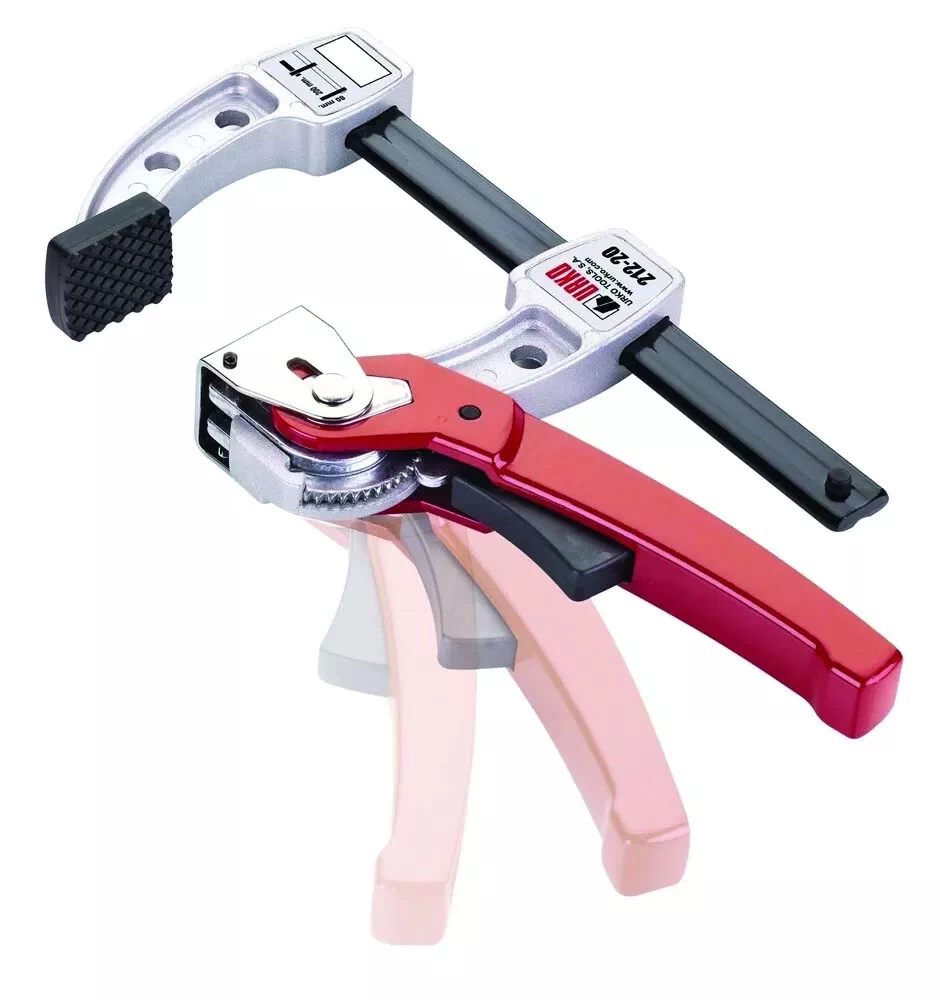 Profil spécial en 8. Serrage progressif à levier. Mors en aluminium.