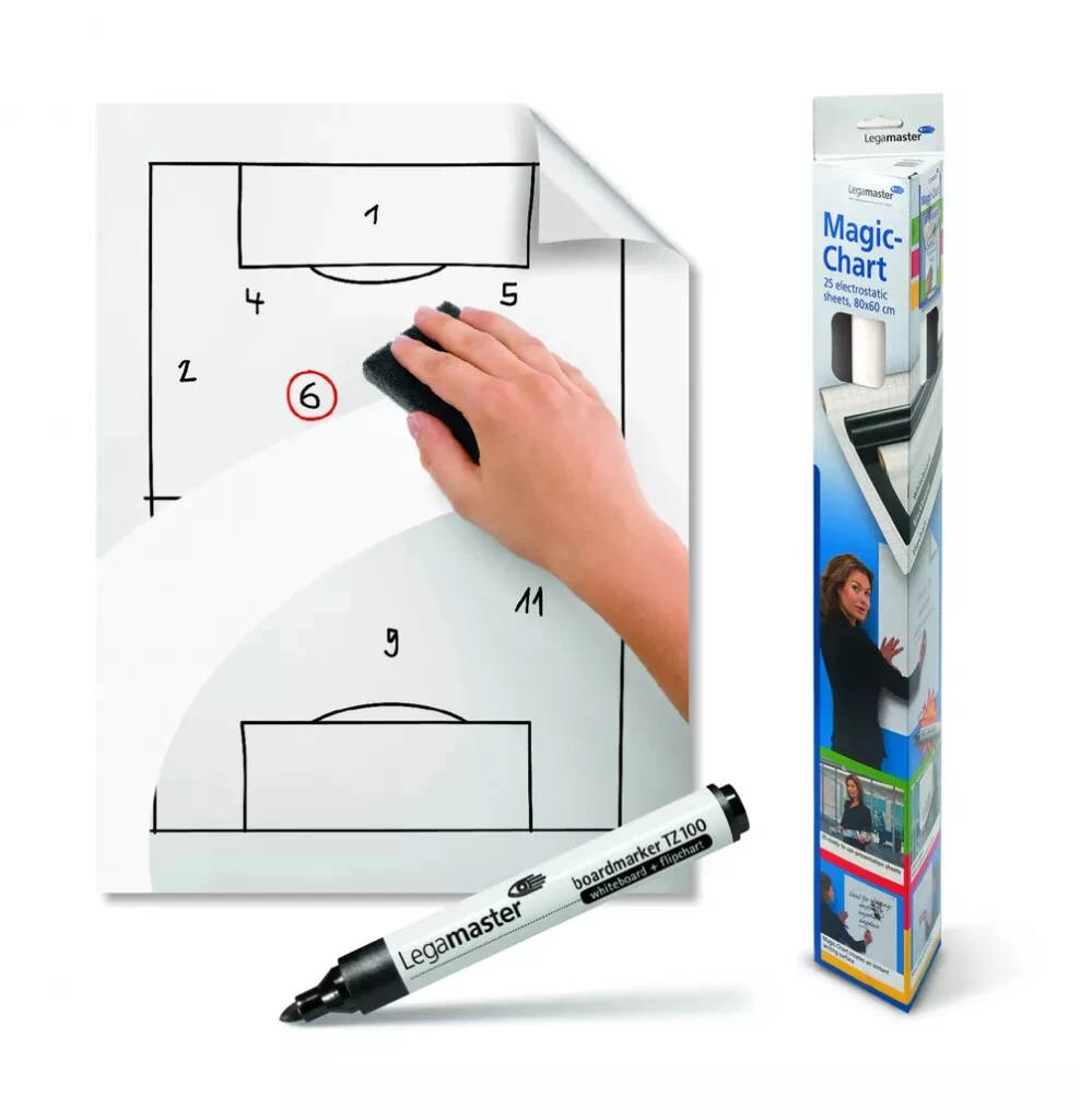 surface d’écriture instantanée. Réversible, indéchirable, repositionnable et recyclable. 1 marqueur inclus.