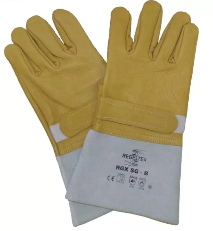 Gants 5 doigts, cuir pleine fleur de bovin hydrofuge et siliconé pour une meilleure résistance à la flamme, pouce palmé, manchette croûte de 100 mm, bride de serrage au dos de la main munie dun ruban auto agrippant.