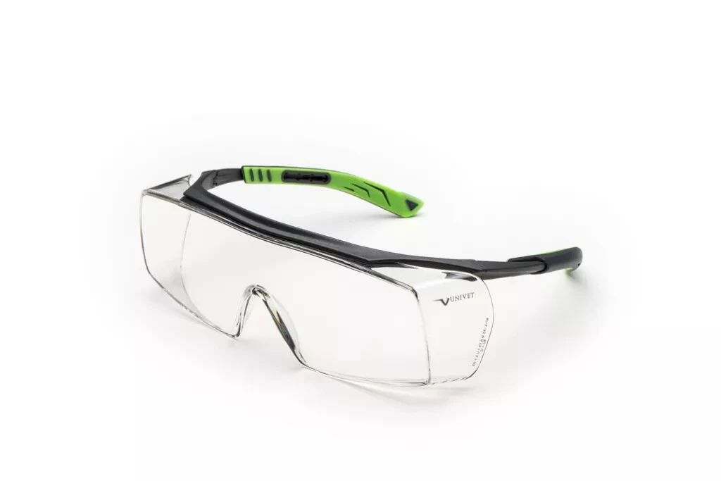 Lunettes de protection pouvant être portées par-dessus des lunettes correctrices.