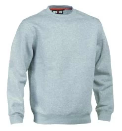 Avec encolure ronde. Col, poignets et bas tricotés en côtes.