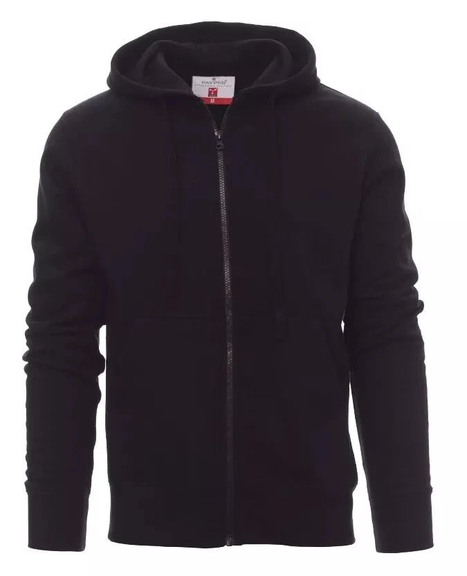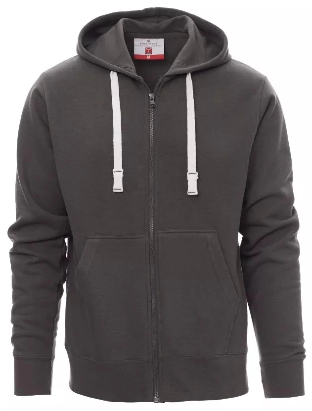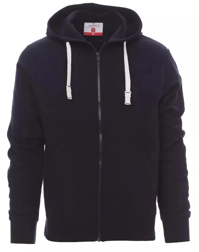Sweat shirt homme zippé ave capuche, poches kangourou, poignets et taille à côtés élastifiés.
