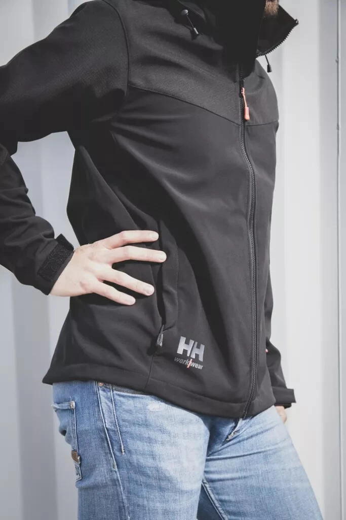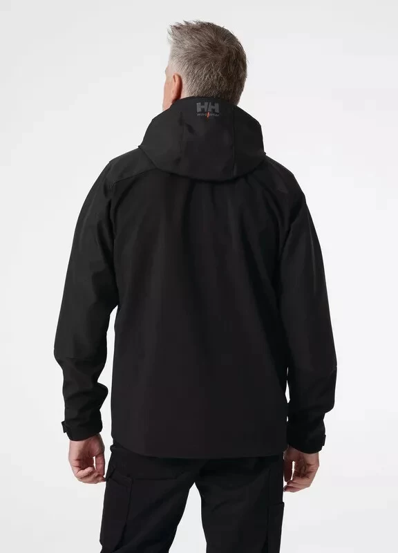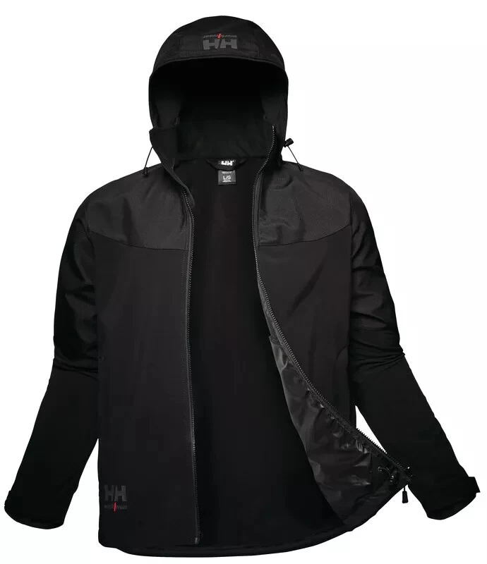 Veste zippée imperméable à capuche amovible ajustable par cordon de serrage. Tissu déperlant DWR. Coloris noir.