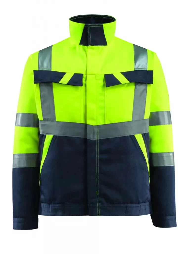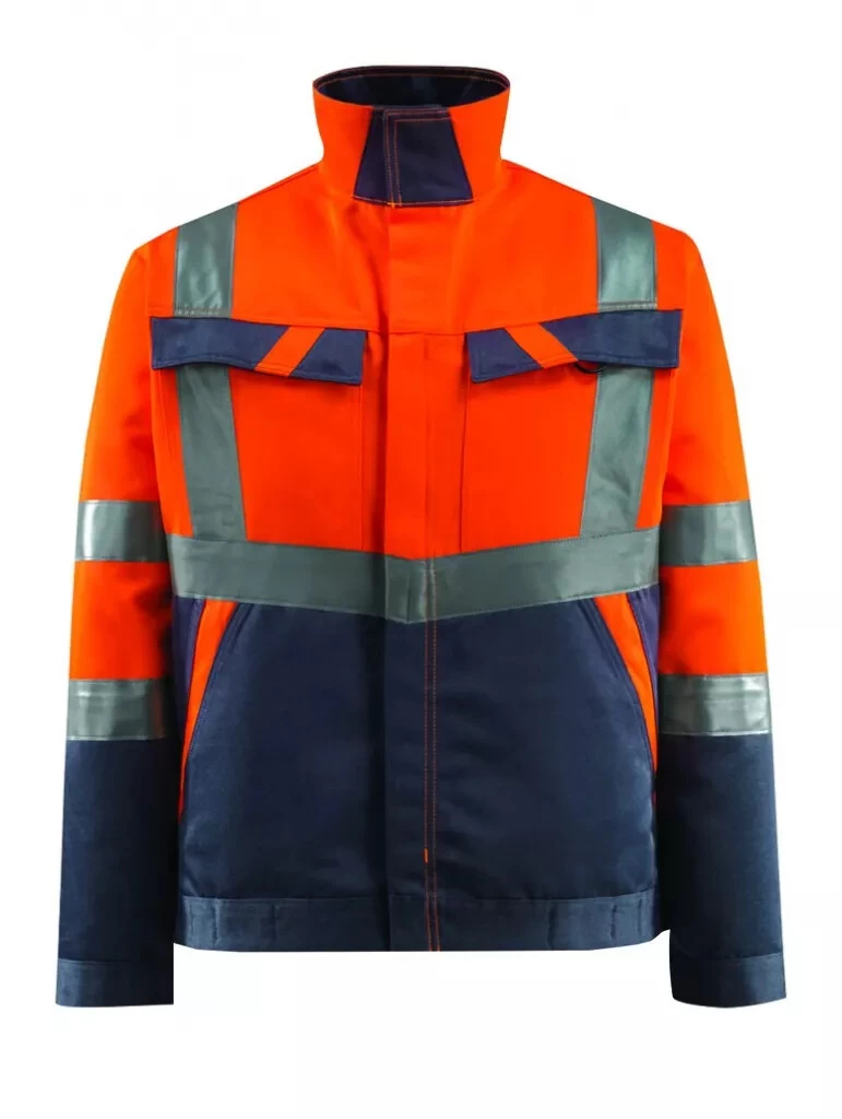 Tissu foncé placé là où le vêtement est le plus exposé à la saleté. Fentes sur les manches permettant de les retrousser. Ajustement individuel en réglant le bord inférieur. Produit résistant au lavage industriel. Fermeture zippée et rabat coupe-vent fermé par boutons pression. Poches poitrine sous rabat. Poches frontales et poche intérieure. Poignets de manche avec boutons pression.