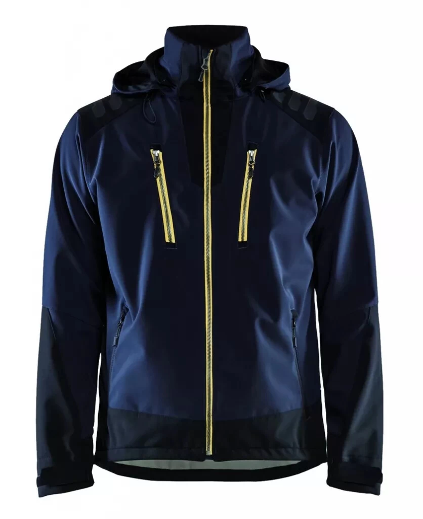 92% polyester, 8% élasthanne, softshell 3-couches, stretch, imperméable 10000 mm, coupe-vent, respirabilité 4000 g/m²/24h, 255g/m².